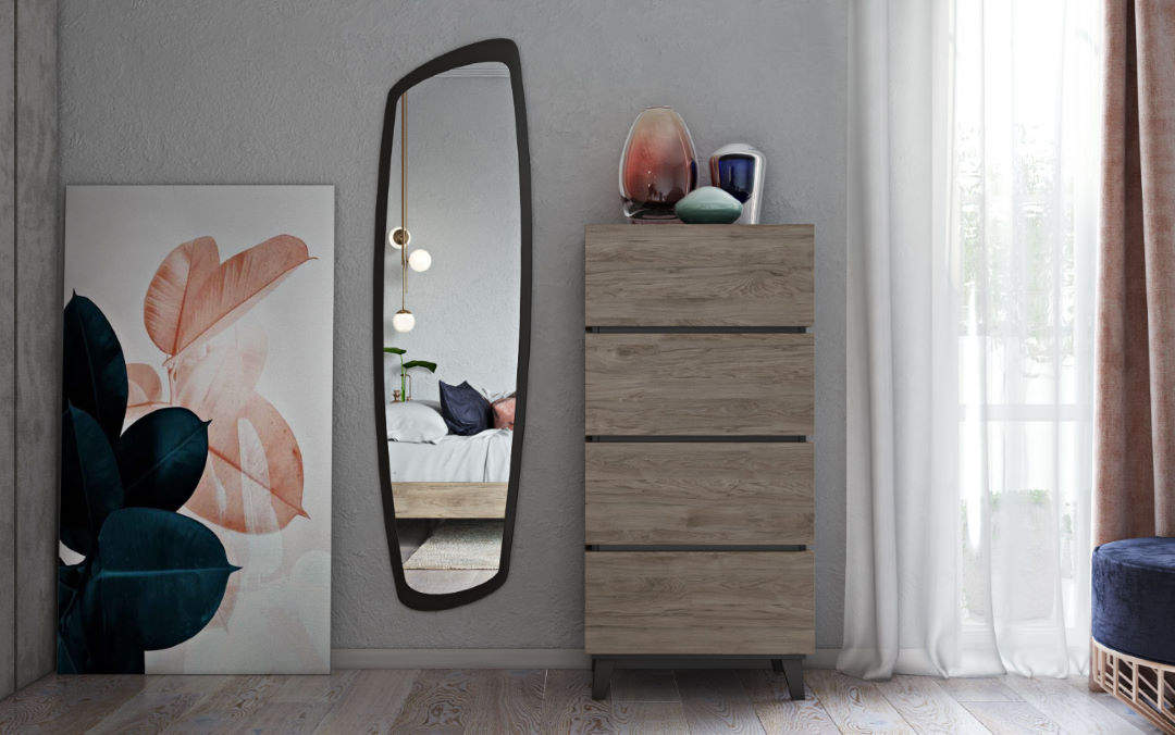 Δυνατότητα επιλογής ανάμεσα σε χαμηλό έπιπλο τουαλέτας με καθρέπτη ή σε ψηλή συρταριέρα με επιδαπέδιο καθρέπτη, καθώς και σε μια ολοκληρωμένη σειρά από βοηθητικά έπιπλα και αξεσουάρ, ώστε να το διαμορφώσετε σύμφωνα με το δικό σας στυλ.