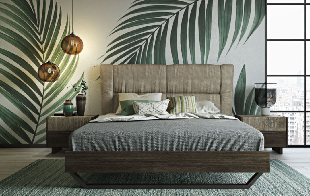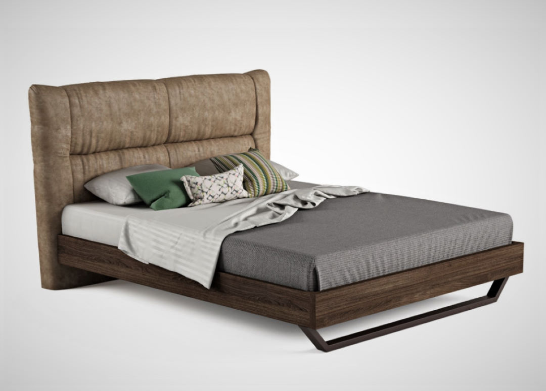 Κρεβάτι με ξύλινες τραβέρσες, μεταλλική βάση στήριξης και δυνατότητα επένδυσης στό κεφαλάρι με οικολογικό τεχνόδερμα (eco-pelle) ή αλέκιαστο ύφασμα (Easy-Clean), με μοναδικούς συνδυασμούς χρωμάτων σε 200 επιλεγμένα υφάσματα.