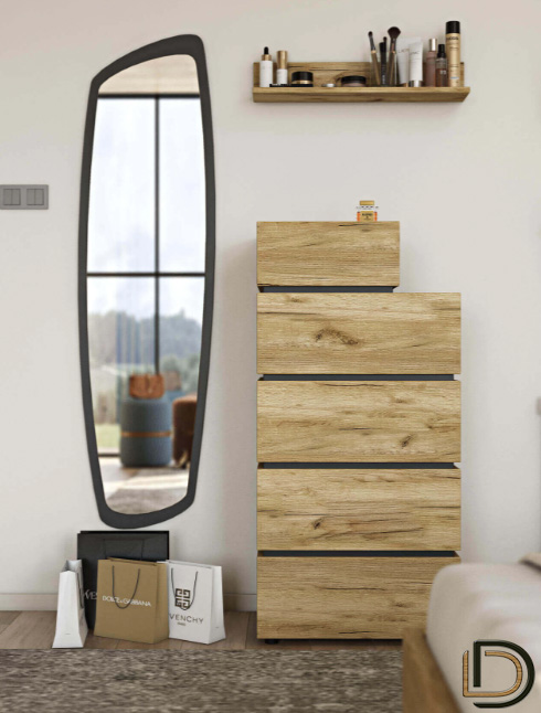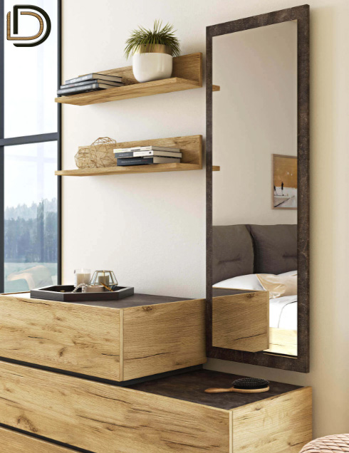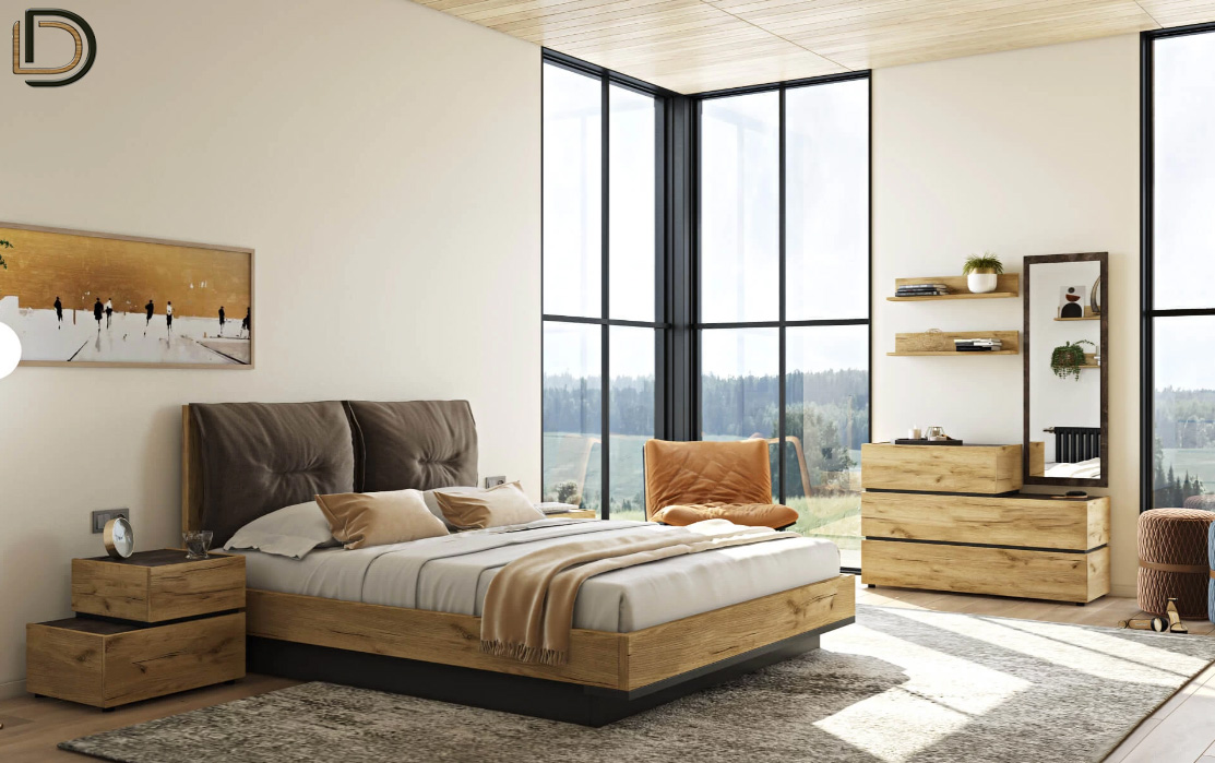Σετ κρεβατοκάμαρας σε Δρυς ρουστίκ αίσθηση, από τεχνητό καπλαμά υψηλών προδιαγραφών που διαθέτει αντιχαρακτική επίστρωση (anti-scratch coating), για μεγαλύτερη αντοχή στις γρατζουνιές και τα χτυπήματα.