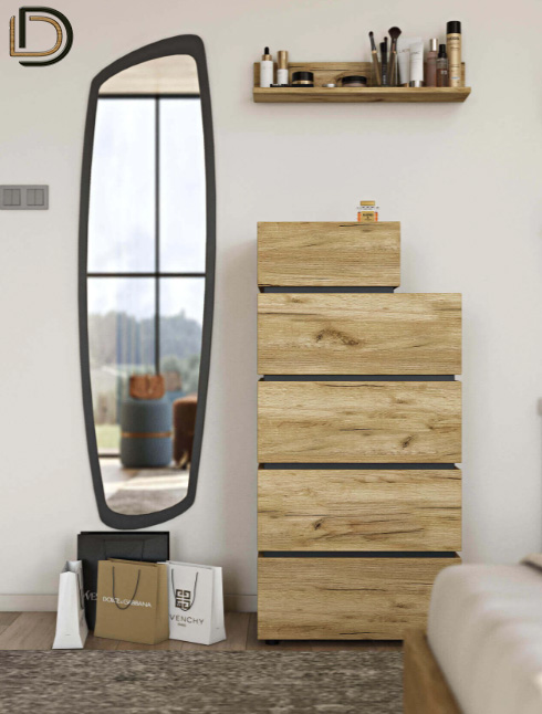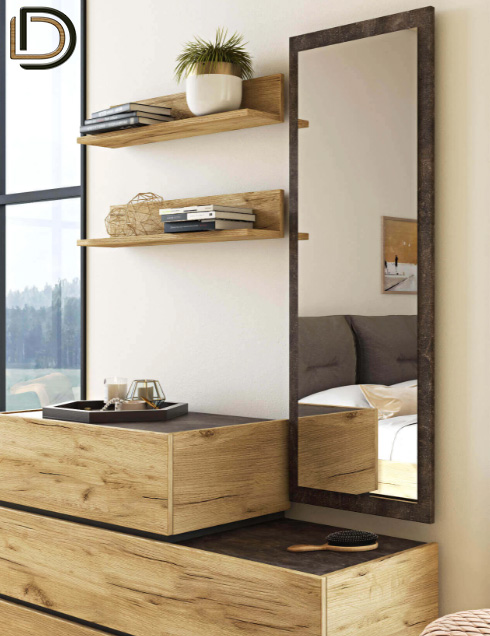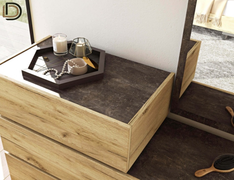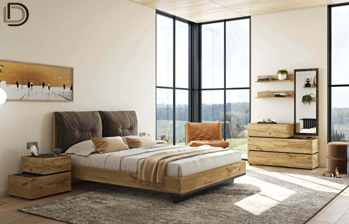 Σετ κρεβατοκάμαρας σε Δρυς ρουστίκ αίσθηση, από τεχνητό καπλαμά υψηλών προδιαγραφών που διαθέτει αντιχαρακτική επίστρωση (anti-scratch coating), για μεγαλύτερη αντοχή στις γρατζουνιές και τα χτυπήματα.