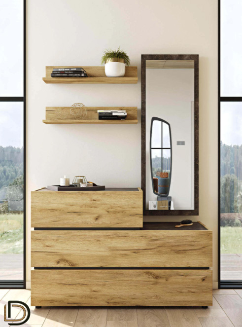 • σύνθεση επίπλου χαμηλής συρταριέρας με καθρέπτη.