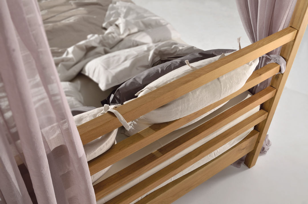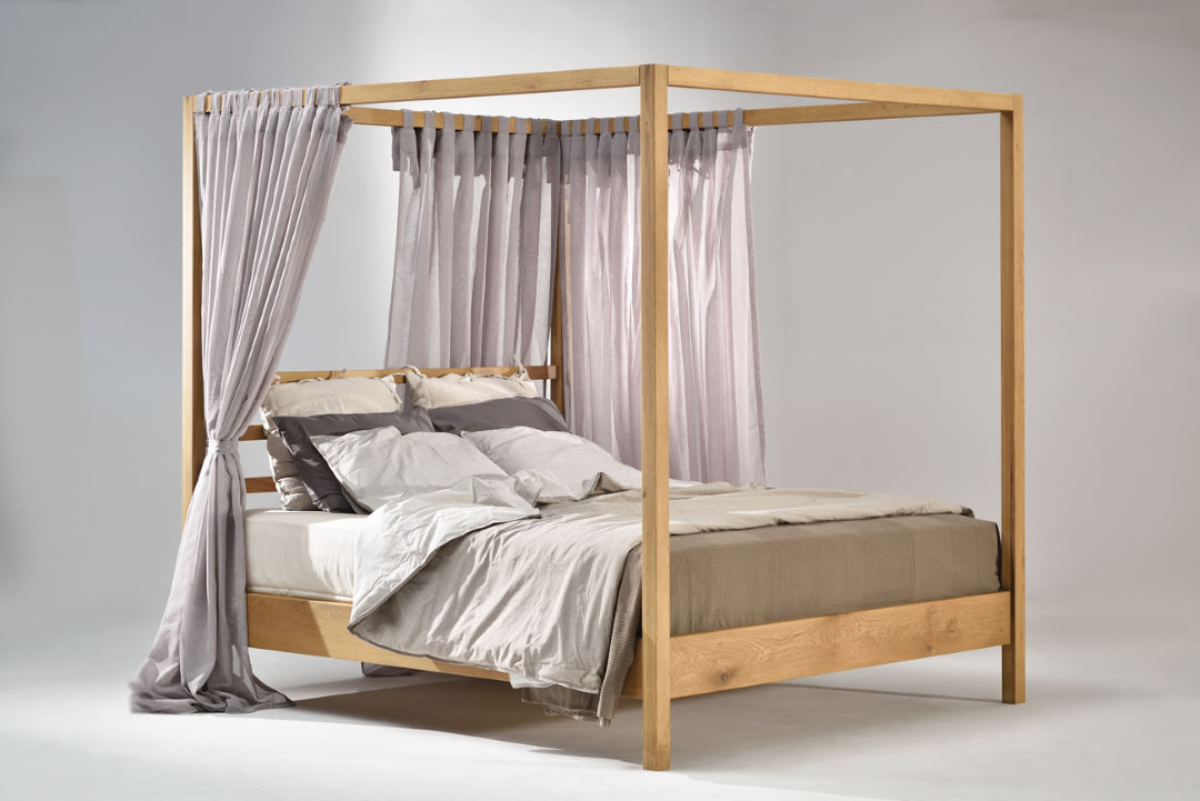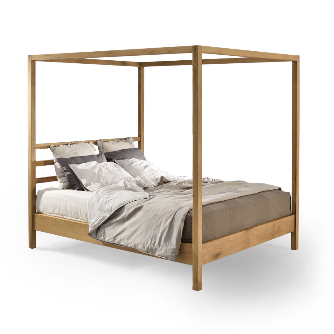 Κρεβάτι με ουρανό από μασίφ σκελετό σε ξύλο Δρυός.