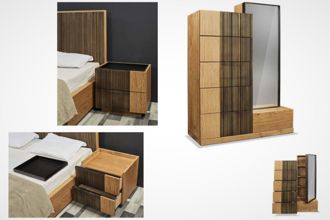 Με ψηλή συρταριέρα και επιδαπέδιο ανοιγόμενο καθρέπτη, καθώς και με μια ολοκληρωμένη σειρά από βοηθητικά έπιπλα, αξεσουάρ και καινοτομίες, ώστε να το διαμορφώσετε σύμφωνα με το δικό σας στυλ.