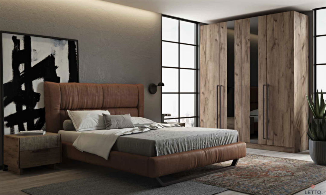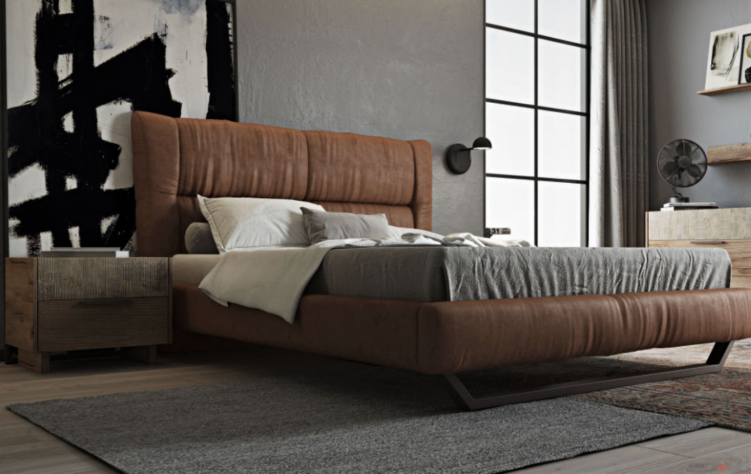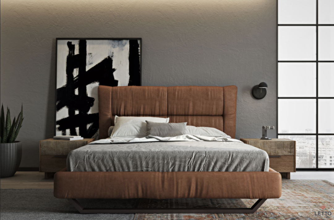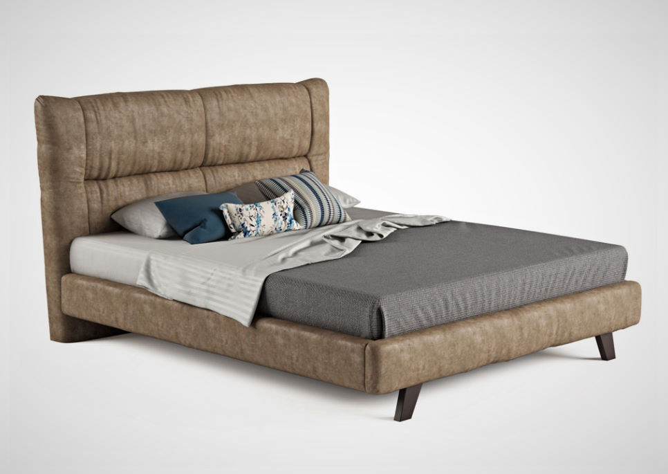 Κρεβάτι με ντυμένες τραβέρσες, μεταλλική βάση στήριξης και δυνατότητα επένδυσης με οικολογικό τεχνόδερμα (eco-pelle) ή αλέκιαστο ύφασμα (Easy-Clean), με μοναδικούς συνδυασμούς χρωμάτων σε 200 επιλεγμένα υφάσματα.