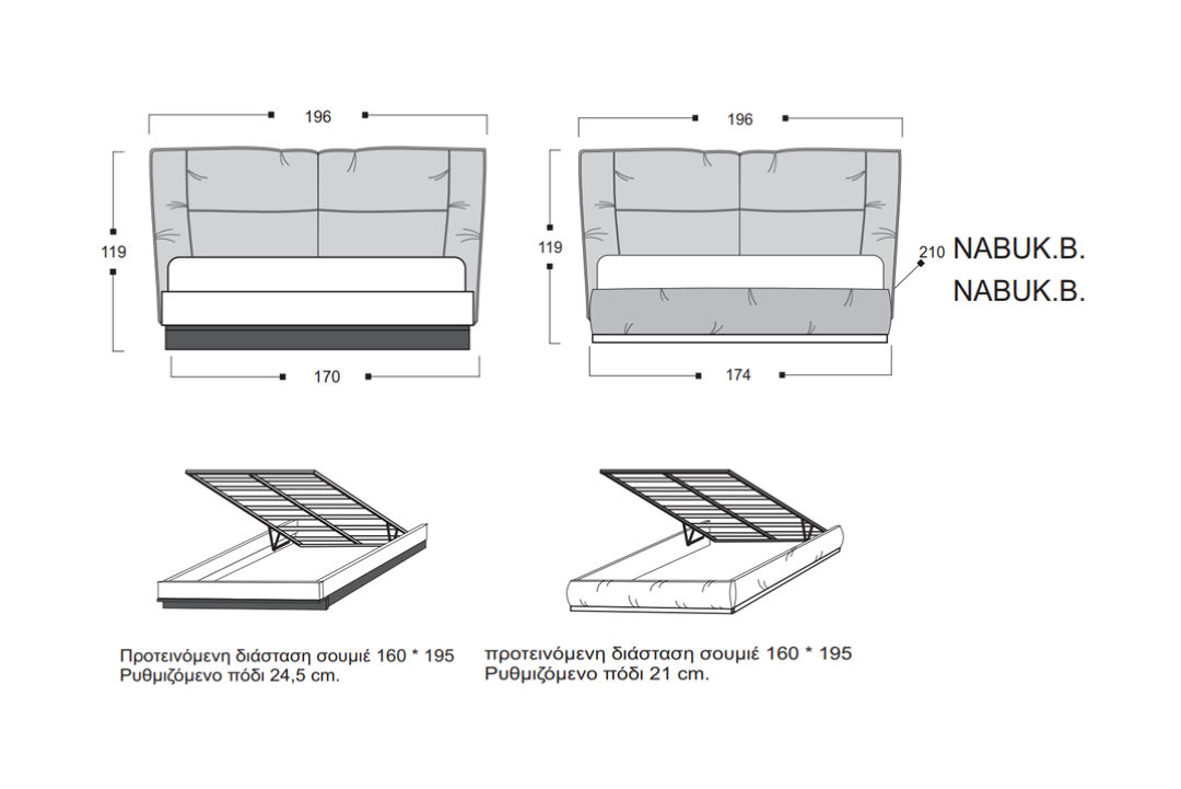 - Διπλό κρεβάτι με ύφασμα κεφαλαριού Easy-Clean ( (Mas/ti αδιάβροχο-αλέκιαστο)