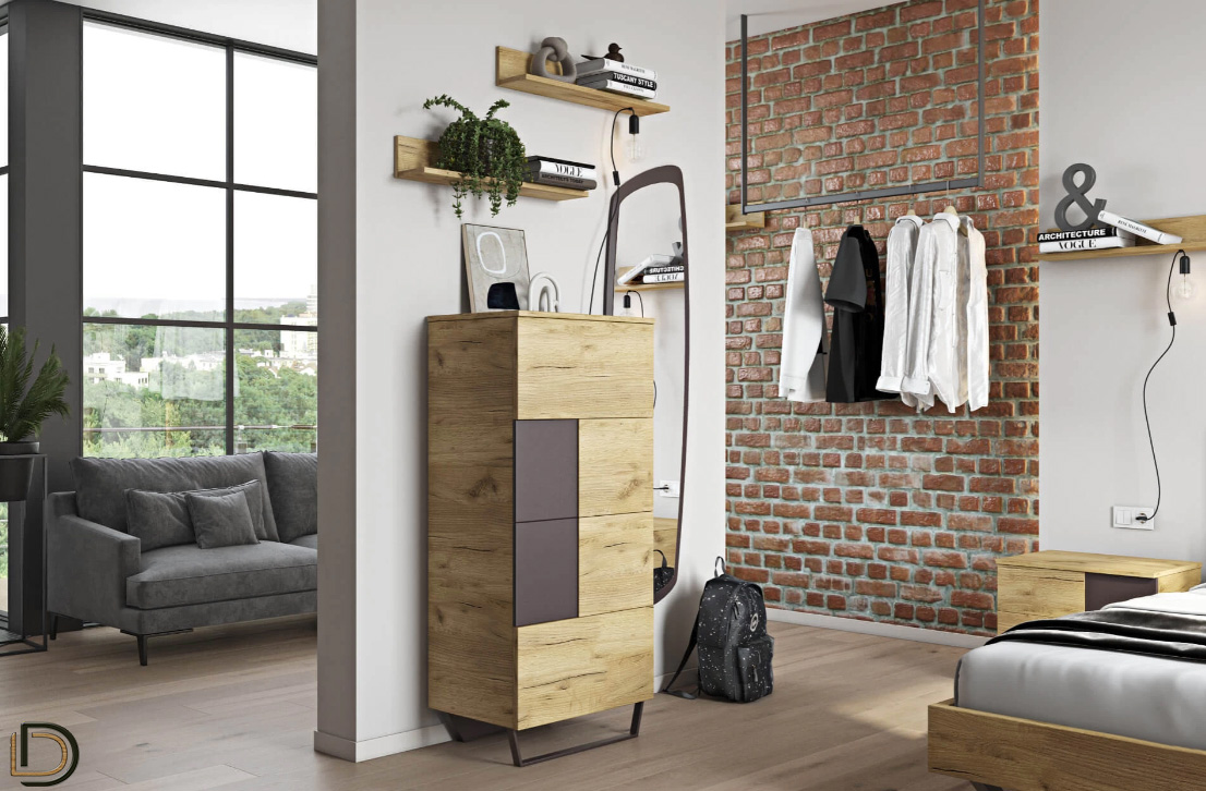 Σετ κρεβατοκάμαρας σε Δρυς ρουστίκ αίσθηση, από τεχνητό καπλαμά υψηλών προδιαγραφών που διαθέτει αντιχαρακτική επίστρωση (anti-scratch coating), για μεγαλύτερη αντοχή στις γρατζουνιές και τα χτυπήματα.