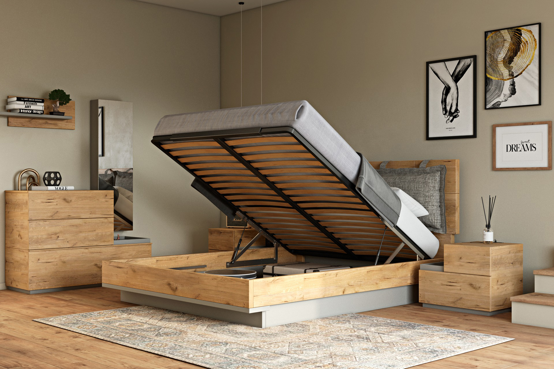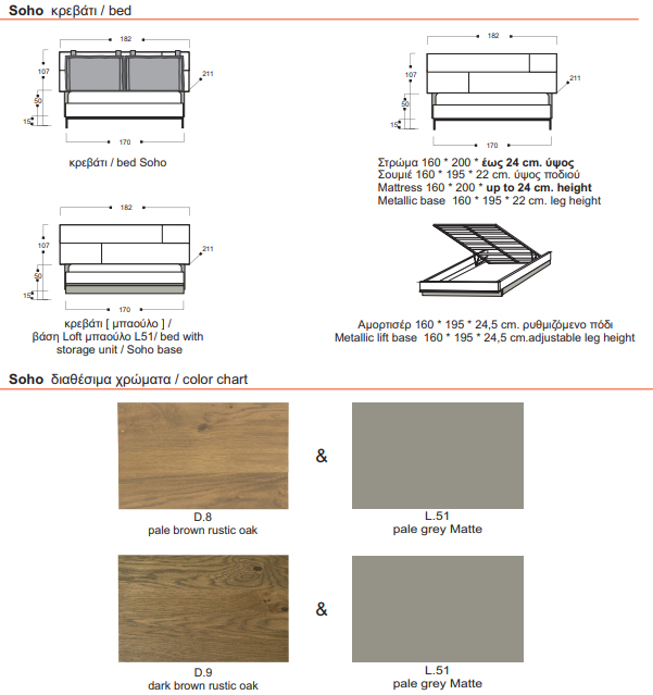 - ανιχνευτής κίνησης για αυτόματο άναμμα του φωτισμού led στην βάση του κρεβατιού ή δυνατότητα επιλογής χειροκίνητου διακόπτη.