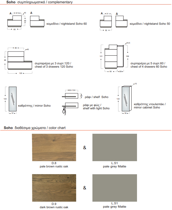 - κομοδίνα 2 τμχ. 50cm ή 60cm.