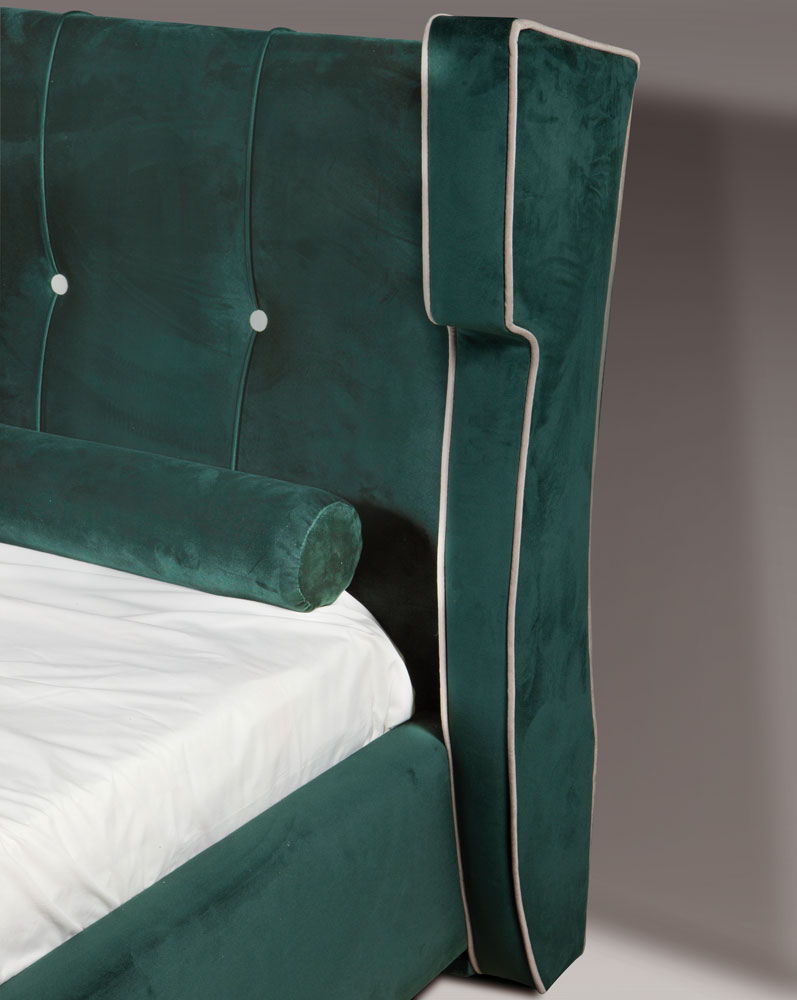 Υφασμάτινο κρεβάτι με μοντέρνα αισθητική και έντονη προσωπικότητα.